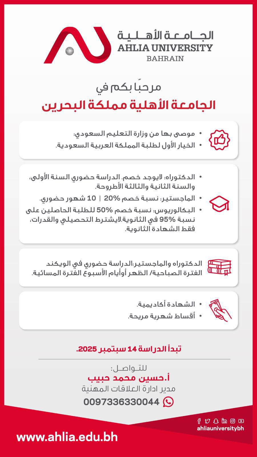 ”الجامعة الأهلية بالبحرين“ الفرصة الأخيرة