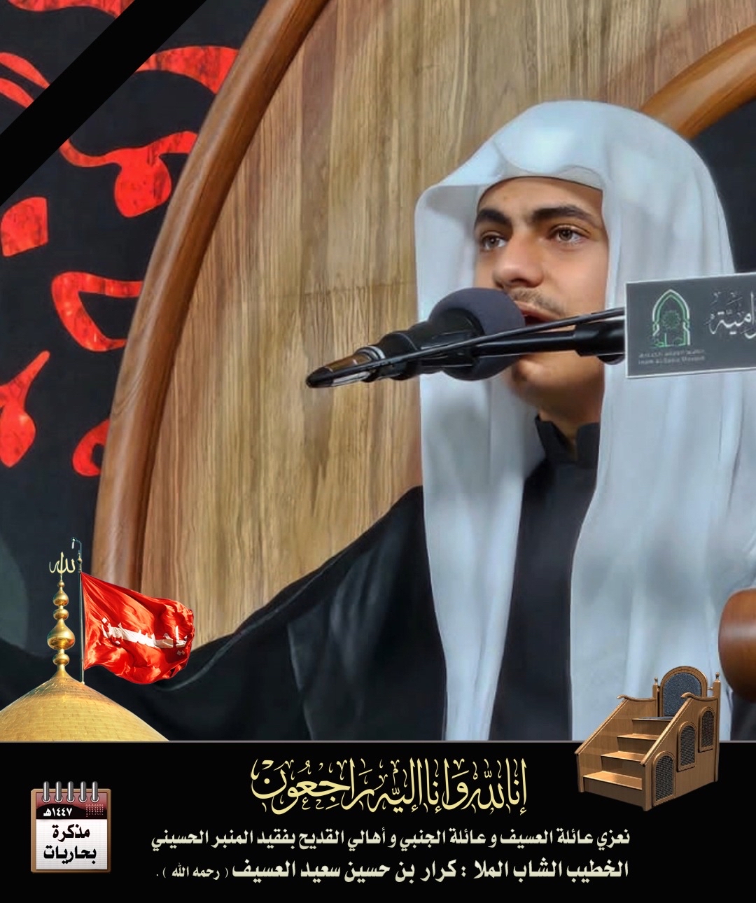 • الملا كرار حسين سعيد العسيف الذي توفّي يوم السبت 14 ربيع الأول 1447 هجري.