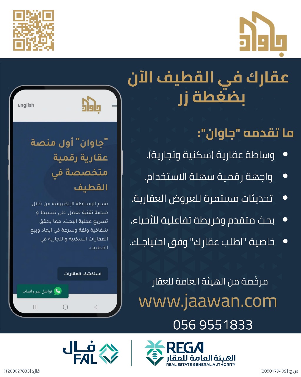 جاوان | شريكك الرقمي في رحلة العقار بالقطيف