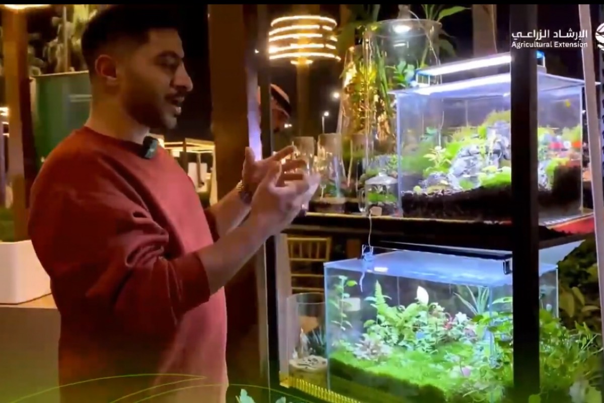 طرح مكتب وزارة البيئة والمياه والزراعة تقنية الزراعة داخل الأحواض الزجاجية المغلقة أو ما يعرف بـ ”التيراريوم“، كحل مبتكر ومستدام للتشجير المنزلي، موفراً بيئة مثالية للنباتات الاستوائية عبر دورة بيولوجية ذاتية تضمن حياة مديدة للنبات بأقل جهد وعناية، وذلك ضمن جهود الوزارة لتعزيز الثقافة البيئية ونشر مفاهيم الزراعة الذكية.