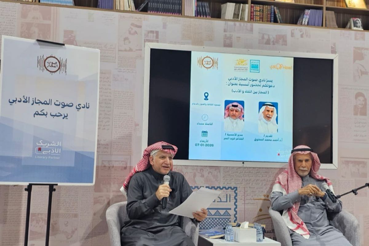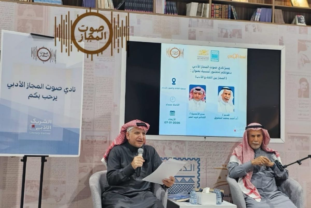 دشن نادي صوت المجاز الأدبي باكورة أنشطته لعام 2026 بتنظيم أمسية ثقافية نوعية حملت عنوان ”المجاز بين اللغة والأدب“، مساء الأربعاء، بالتعاون مع جمعية الثقافة والفنون بالدمام.