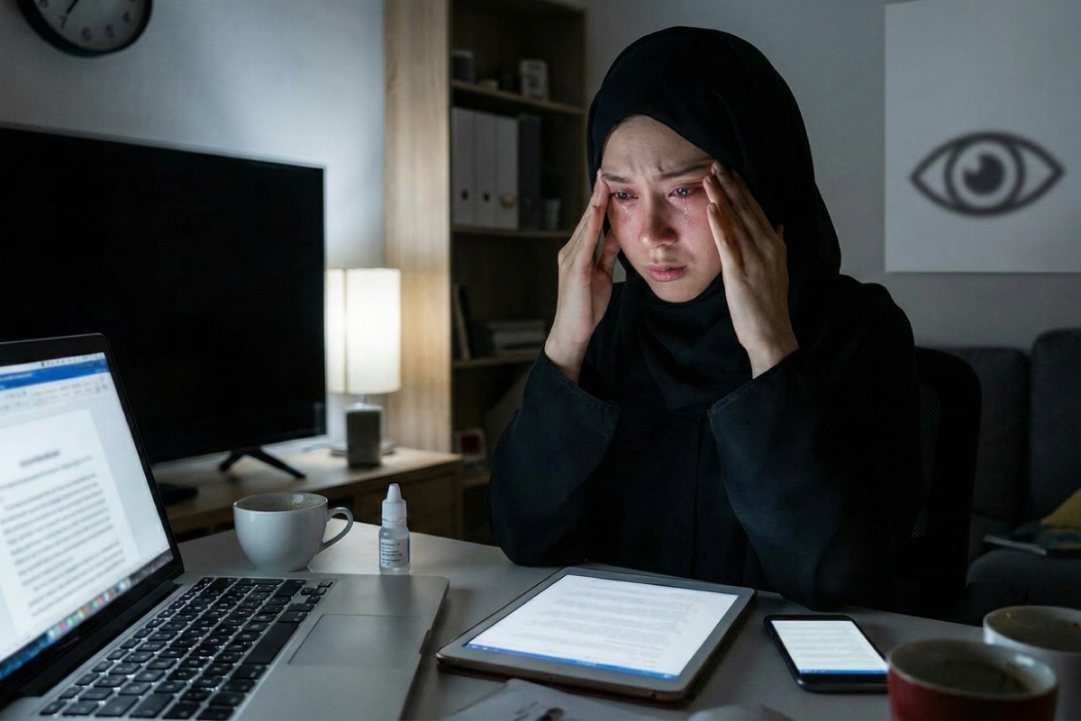 وعزت تفاقم هذه الحالة إلى انخفاض معدل الرمش التلقائي أثناء التركيز في المحتوى الرقمي، وهو ما يتسبب في جفاف العين وضعف الطبقة الدمعية المسؤولة عن الترطيب الطبيعي، ويزيد من حدة الإجهاد البصري.