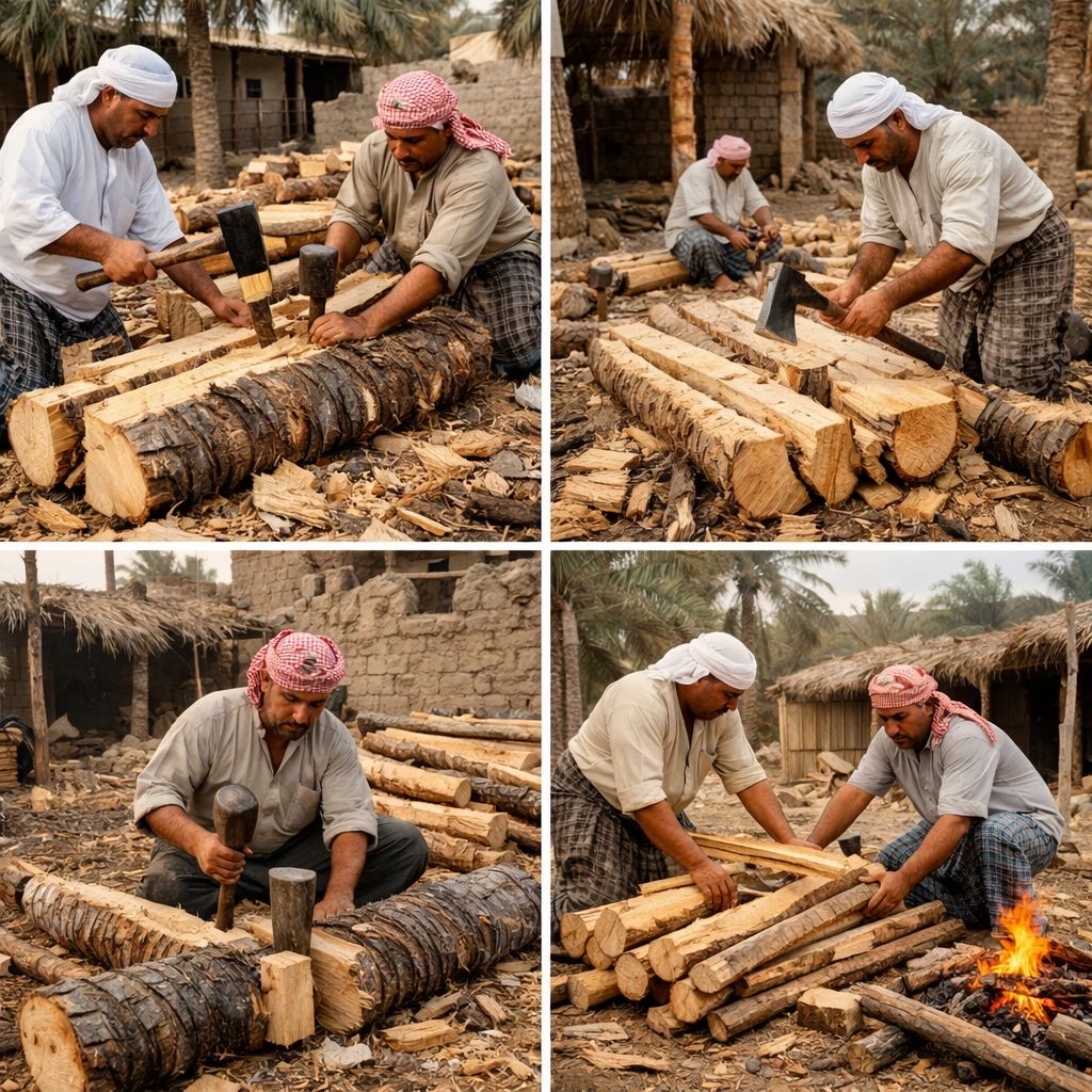 ويتولى «المسجن» تسجين الجذوع بتقطيعها وفلقها لإنتاج قوائم تستعمل في تسقيف المنازل وبناء العرشان وصناعة أدوات أخرى، بينما استخدمت الجذوع الهشة وقودًا بما يعكس مكانة النخلة في التراث الخليجي؛ فقد كانت جذوع النخيل ركيزة في البناء والصناعات التقليدية قديمًا، واستخدمت في تشييد البيوت وصناعة أدوات معيشية متنوعة.