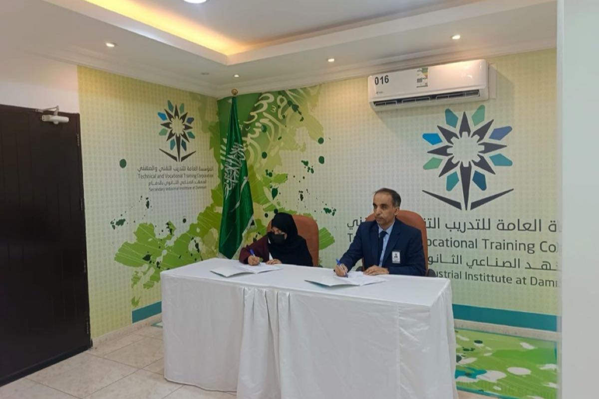 وشهد مقر المعهد الصناعي الثانوي بالدمام توقيع اتفاقية تعاون نوعية مع جمعية العطاء النسائية الأهلية، لكسر الحواجز النمطية في المهن النسائية.