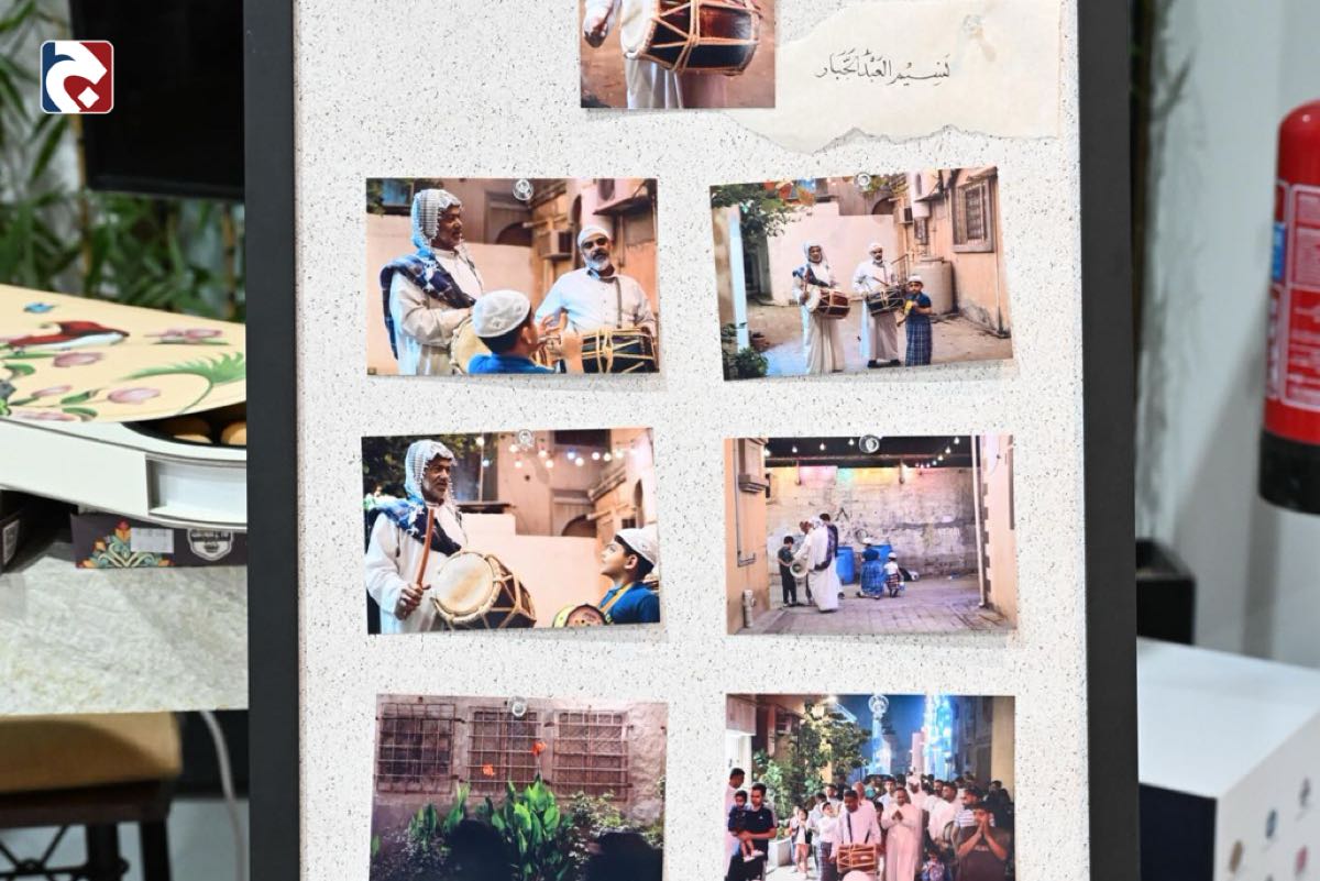 وفي زاوية أخرى، يقدم المصور منصور آل حسن سرداً بصرياً لمهنة ”المسحر“، مسلطاً الضوء على الحاج أحمد إبراهيم الذي يجوب أزقة بلدة سنابس منذ تسعينيات القرن الماضي.