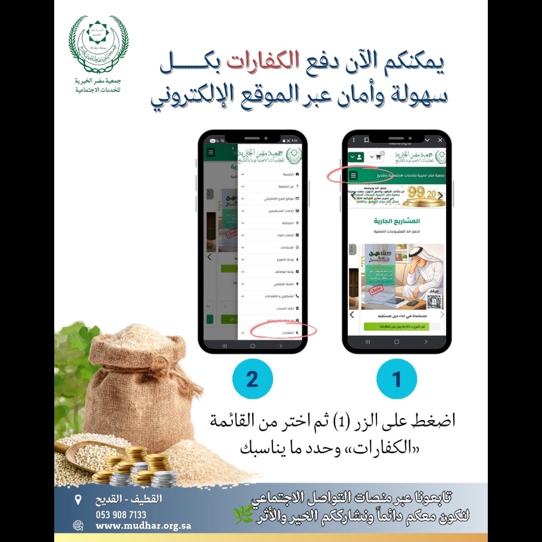 أطلقت جمعية مضر الخيرية مشروعاً إلكترونياً متكاملاً لدفع الكفارات والفدية عبر موقعها الرسمي، بهدف تيسير أداء الواجبات الشرعية، وتوفير منصة رقمية موثوقة تضمن إيصال المساعدات للأسر المتعففة بدقة.