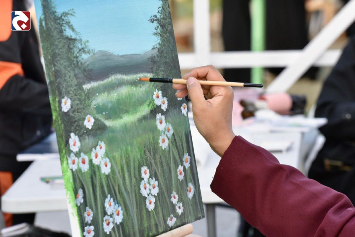 وأضافت أن المشاركين نوعوا أدواتهم بين الألوان الزيتية والمائية والأكريليك، وصولاً إلى توظيف خامات البيئة بابتكار، مستشهدة بتجربة تحويل الكرتون العادي إلى أوراق شجر ولوحات إبداعية.