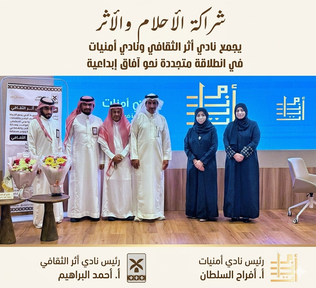 ولأن الأحلام الكبيرة لا تكتمل إلا بوجود فضاءٍ آمن يمدها بالقوة، تجلت عظمة نادي أثر الثقافي في هذا المحفل. لم يكن النادي مجرد جهة منظمة، بل كان يجسد دور الحاضنة الحقيقية التي تؤمن بأن رفعة الثقافة تكمن في تكاتف كياناتها. وقد لخص الأستاذ أحمد الإبراهيم، مؤسس نادي أثر الثقافي، هذه الرؤية الاستراتيجية بكلماتٍ واضحة حين قال: ”إن بناء المجتمع الواعي يبدأ من احتضان المبادرات الشبابية وخلق فرص لتنمية الطاقات“.