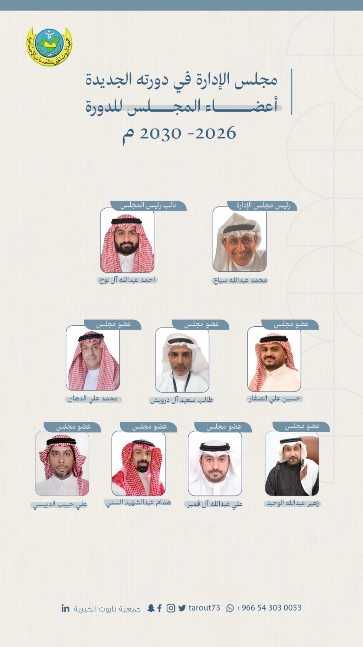 «محمد آل سباع» رئيساً لـ «تاروت الخيرية».. وآل نوح نائباً له