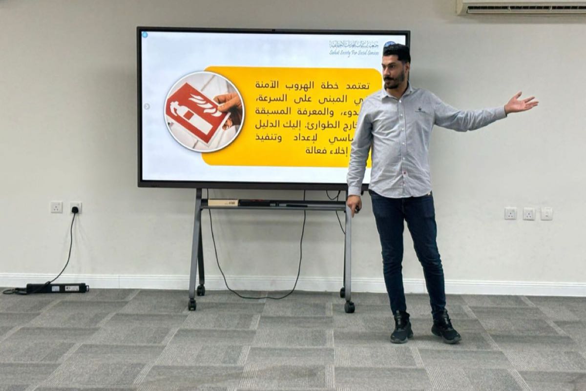 ولفت استشاري السلامة إلى ضرورة فحص الأبواب قبل فتحها، مستعرضاً عناصر خطة الهروب الناجحة، وأنواع طفايات الحريق، وطرق استخدامها الفعّال.