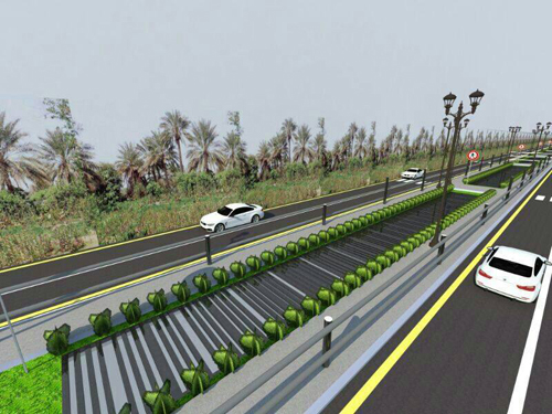 • تسوير المصرف الزراعي بحواجز اسطوانية اسمنتية بشكل جمالي والتي ستساهم في منع سقوط المركبات في المصارف.