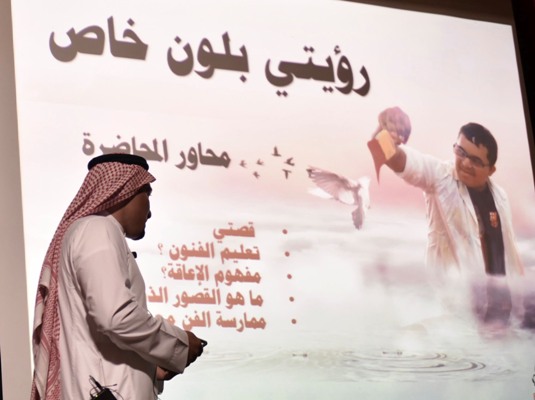 جاء ذلك خلال المحاضرة التي ألقاها على مسرح مركز التنمية الاجتماعية بالقطيف التابع لوزارة العمل والشئون الاجتماعية بعنوان «رؤيتي.. بلون خاص»، أمس الثلاثاء ضمن فعاليات معرض «رؤيتي2» المقام في صالة نادي الفنون.