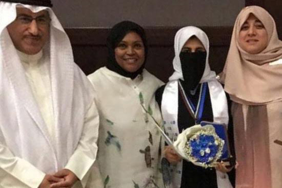 كرم وزير التربية والتعليم بدولة الكويت محمد عبد اللطيف المعلمة السعودية زاهرة كرانات، تقديراً لجهودها ولحصول طالبتها تيماء العمري على المركز الأول في مشروع تحدي القراءة العربي.
