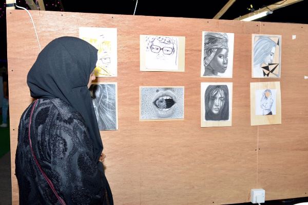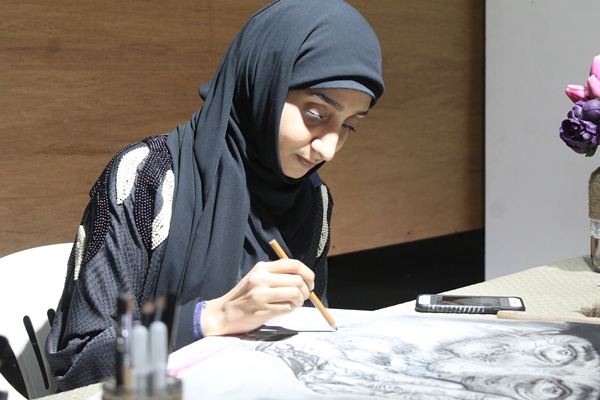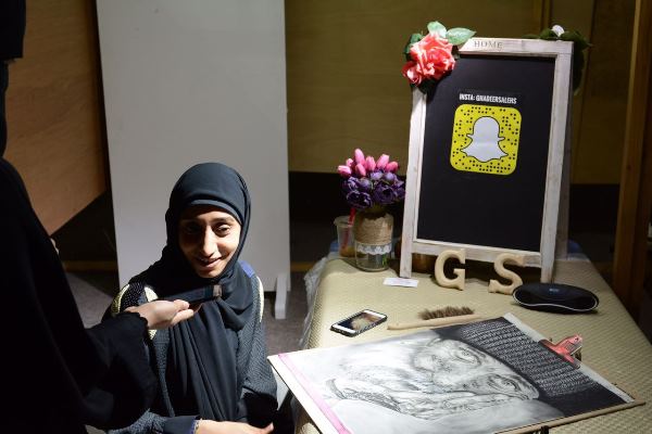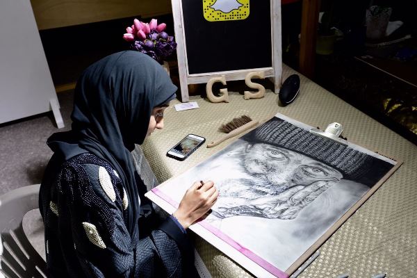الشابة غدير تتحدى تجاعيد مسن بالرسم المباشر في مهرجان الوفاء