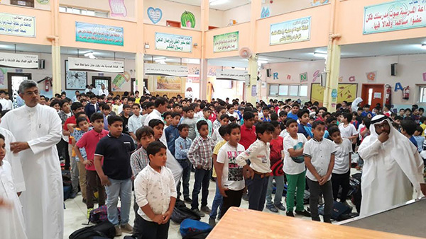 وحث قائد المدرسة حسن آل قرين الطلاب على المشاركة وبث فيهم روح الحماسة والمنافسة.