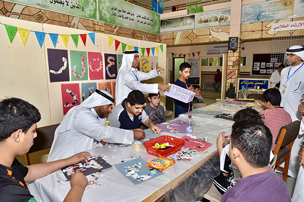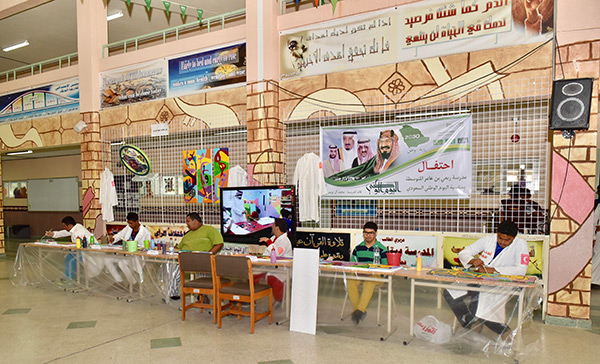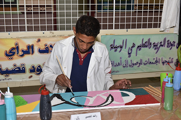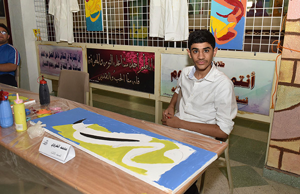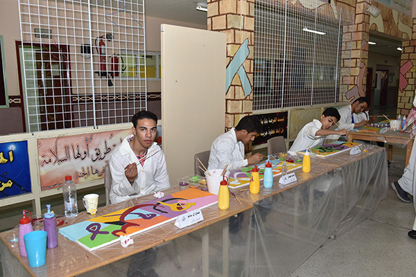 وتضمن المهرجان الذي أعده مدرس مادة الفنية علي الجشي على لوحات جدارية متساوية بطول 12 متر، وصاحبه ورشة تكوين الحرف بالقصاصات وركن نماذج مرسومة ومخطوطات عربية لطلاب التعليم العام.