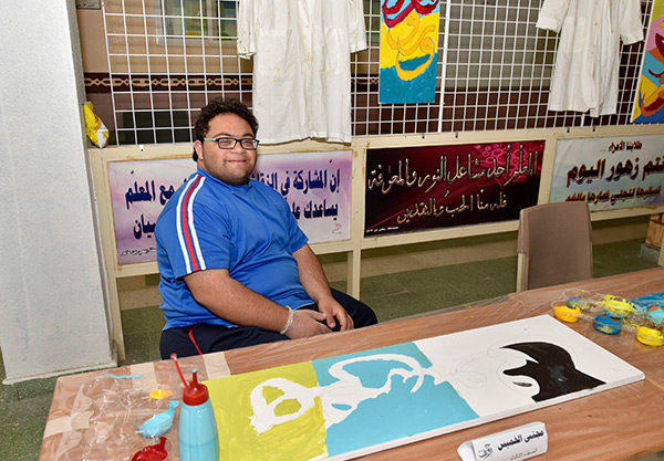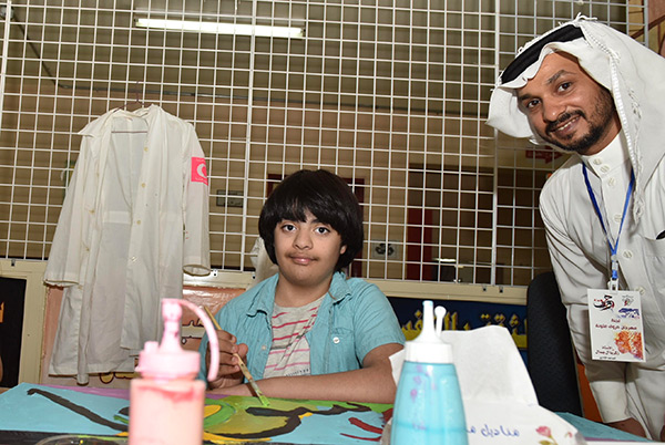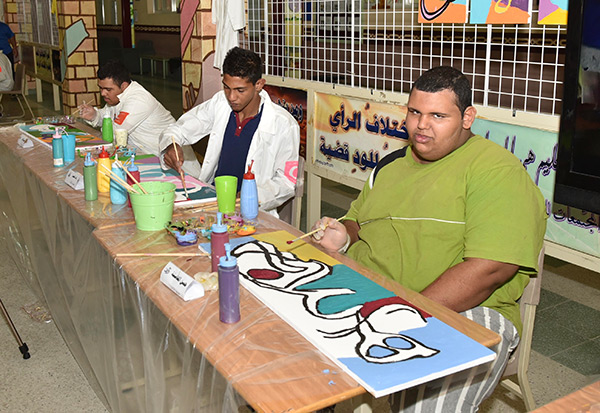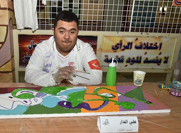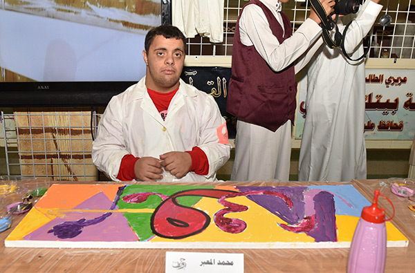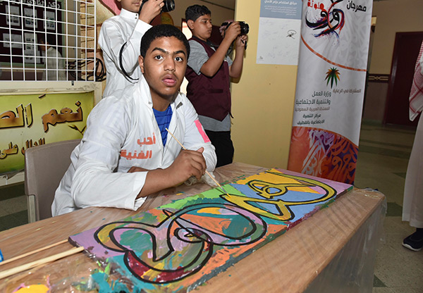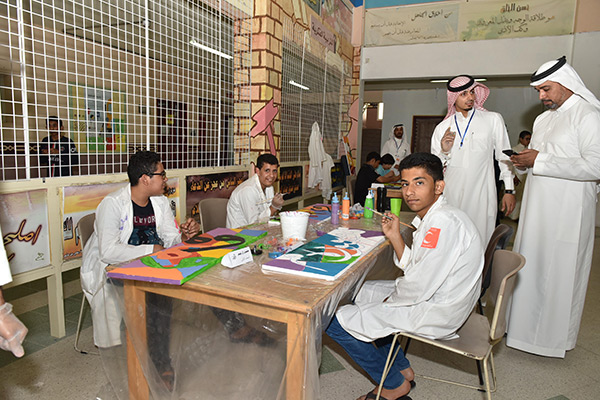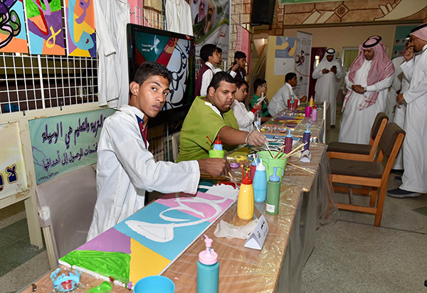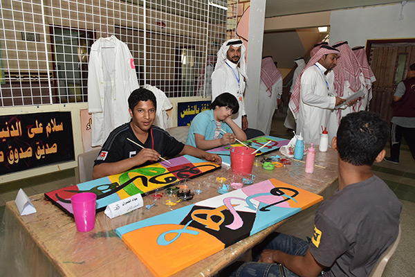 بالصور.. 38 طالبًا من التربية الفكرية يزينون الحروف في لوحات جدارية بالقطيف