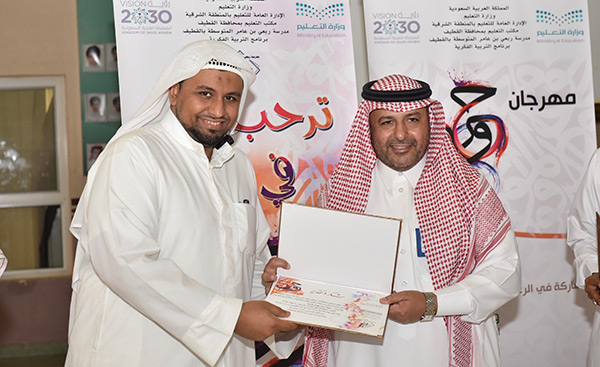 شارك 38 طالبا من برنامج التربية الفكرية في مدرسة ربعي بن عامر المتوسطة بالقطيف في مهرجان «حروف ملونة»، الذي افتتحه يوم الأربعاء مدير مكتب التعليم بالقطيف عبدالكريم العليط.
