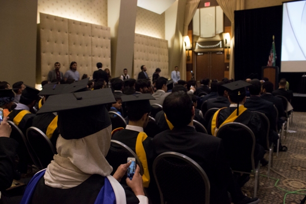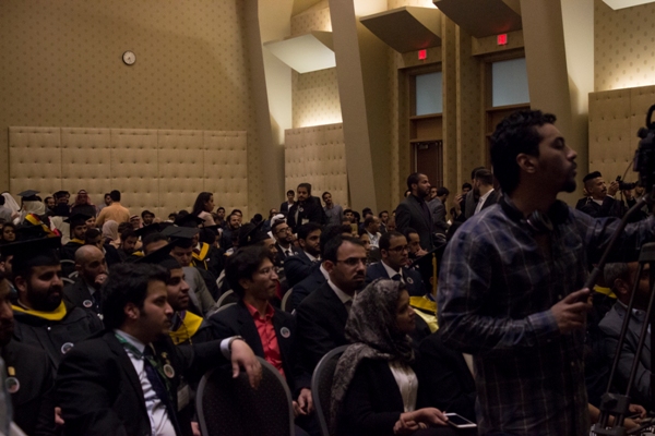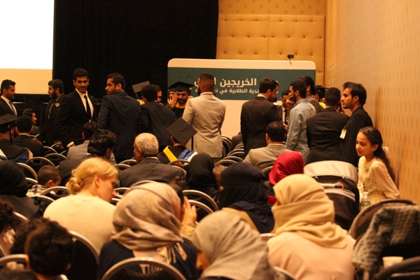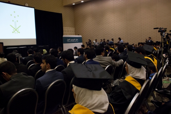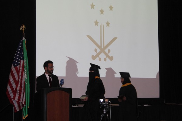 وألقى الدكتور سليمان العرياني كلمة بارك فيها للخريجين والخريجات وحثهم على مواصلة التطوير العلمي وخدمة الوطن بما جنوه من بلد الابتعاث حين عودتهم لسوق العمل السعودي، ثم بدأ تكريم الخريجين والخريجات بمعية نهلة الجبير ورئيس الاتحاد عبدالعزيز المطرفي.