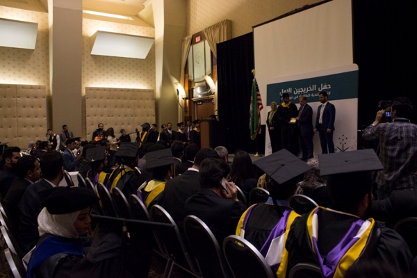 وتخلل الحفل العديد من الفقرات بدءاً من الساعة التاسعة صباحا بورش العمل في إدارة الجودة وإدارة المشاريع والقيادة الدولية، مقدمة من مركز التطوير الاحترافي PDC للخريجين والمهتمين للمساهمة في تطوير القدرات الوظيفية.