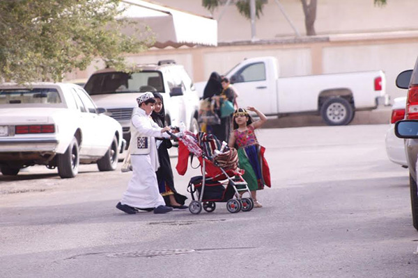 وخرج الأطفال إلى الشوارع والطرقات والأحياء يطرقون الأبواب لجمع الحلوى والمكسرات من المنازل التي حرص أصحابها على الحضور أمام مداخلها.