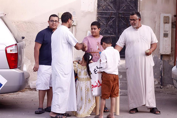 الأطفال الذين رددوا اهازيج شعبية خاصة بالمناسبة حرص الكثير منهم على ارتداء الملابس التراثية فيما حرص الاباء والأمهات على توزيع الحلوى عند أبواب منازلهن.
