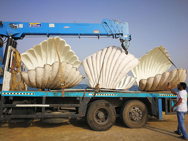 وأوضح القديحي لـ ”جهينة الاخبارية“ أن المجسمات الثمانية عبارة عن 5 محّارات، و3 معالم خليجية هي برج المملكة وبرج خليفة وأبراج الكويت.