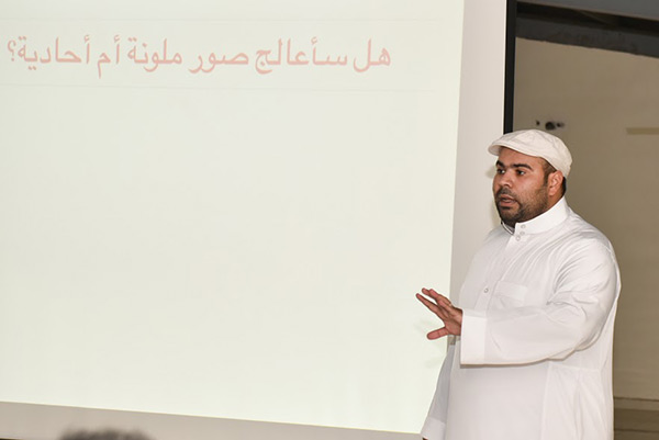 وتحدث الخاطر عن مقدمة معالجة الصورة، مبينًا أهمية معالجتها، وماهية السبل في معالجة العمل الفني، لافتًا إلى ضرورة معرفة الصورة المراد معالجتها، أهي ملونة أو أحادية، كذلك معرفة الصورة قبل المعالجة.