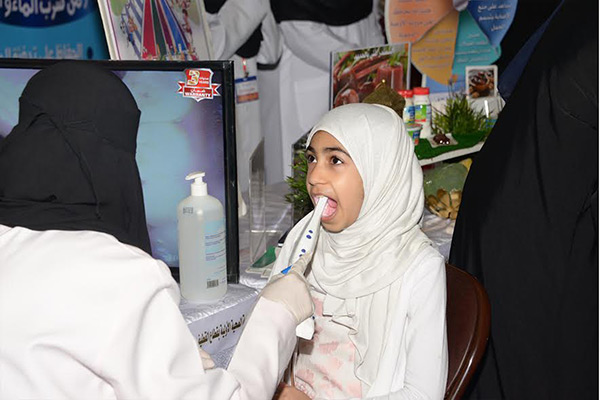 وتخلل الركنين فحوصات مجانية كقياس الوزن والطول وحساب مؤشر كتلة الجسم وفحص الأسنان بالكاميرا الفموية.