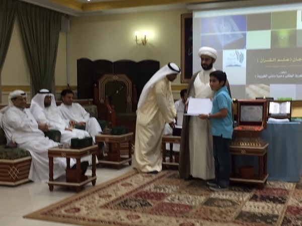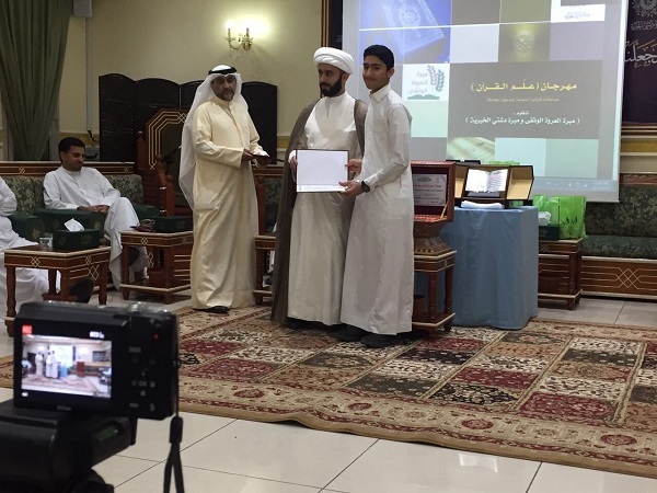 وكان ذلك في مسابقة مهرجان «علّم القران» والتي نظمتها مبرتي العروة الوثقى ودشتي الخيريتين بالكويت.