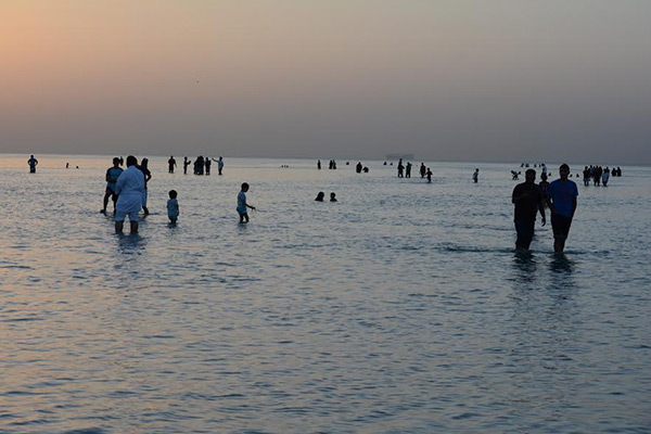 وتبدأ الاعداد بالتقاطر على الموقع قبل ساعة تقريبا من موعد طلوع الشمس وساعتين من غروبها، حيث يتحول الموقع الى منطقة تغص باعداد كبيرة من الاطفال والنساء والرجال، بهدف الاستمتاع جزء من الوقت بجوار البحر.