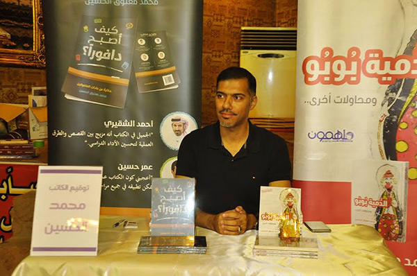 وشارك الكاتب محمد الحسين بركنٍ لتوقيع إصداريه «الدمية بوبو» و«كيف أصبح دافورًا؟»، الذي أكد من خلاله حاجة المؤلفين المحليين لتنظيم معارض تقليدية لبيع الكتب في محافظتي القطيف والأحساء، مشيدا في الوقت نفسه بمعرض تبادل الكتب الذي يأمل بأن يتوسع ويضم فكرة التبادل وبيع الكتب مستقبلا.