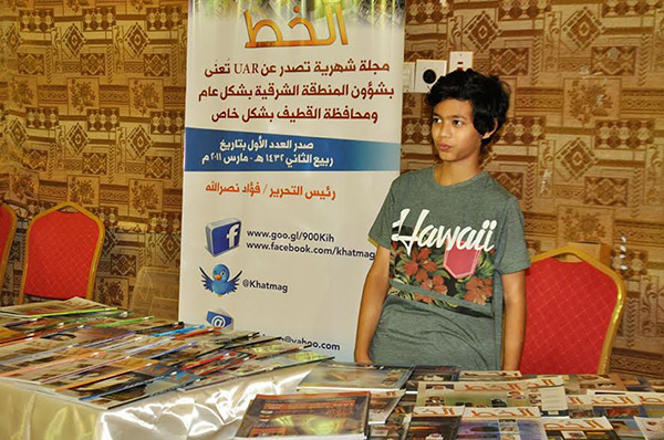 وتحدث رئيس تحرير مجلة الخُط فؤاد نصر الله الذي تواجد في ركن المجلة التي تهتم بتراث وتاريخ محافظة القطيف وبعض رموزها وشخصياتها منذ تاريخ 1433 للهجرة.