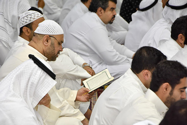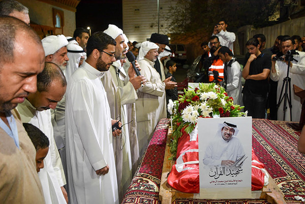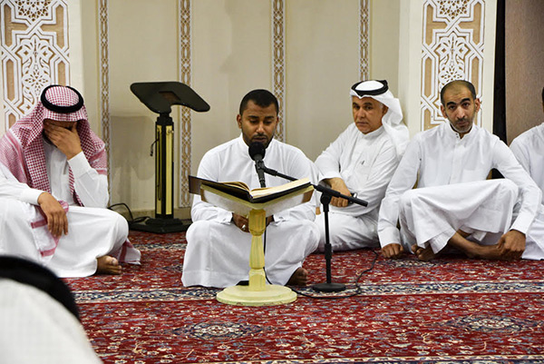 بقراءة القرآن الكريم تلاها القارئ حسن آل عبد ربه، بعد نودي للصلاة على الجنازة خارج المسجد.