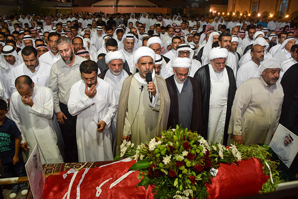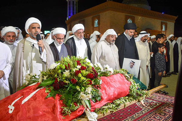 بعدها صلّى جموع المشيعين صلاة الميت على روح الفقيد، حيث أمَّ المصلّين الشيخ حسن الخويلدي.