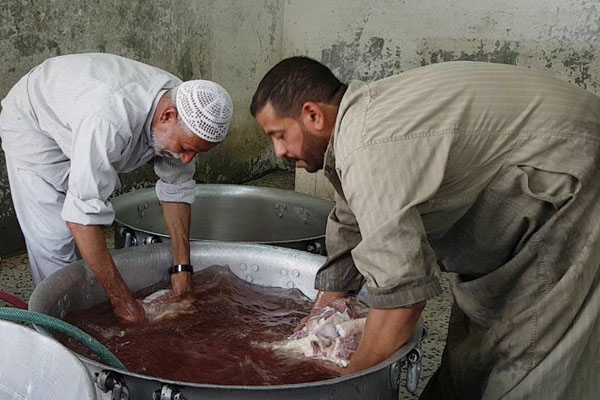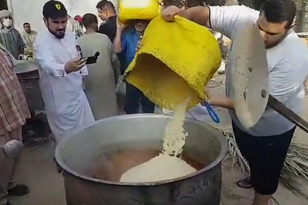 وتستغرق عملية الطهي في القدور الكبيرة عدد من الساعات، حيث تُعد التجهيزات منذ ساعات الصباح وحتى قبيل غروب الشمس، ليكون الأرز واللحم جاهزين لإضافتهم في الأطباق ومن ثم تغليفها بورق القصدير لتحتفظ بحرارتها قبل التوزيع.