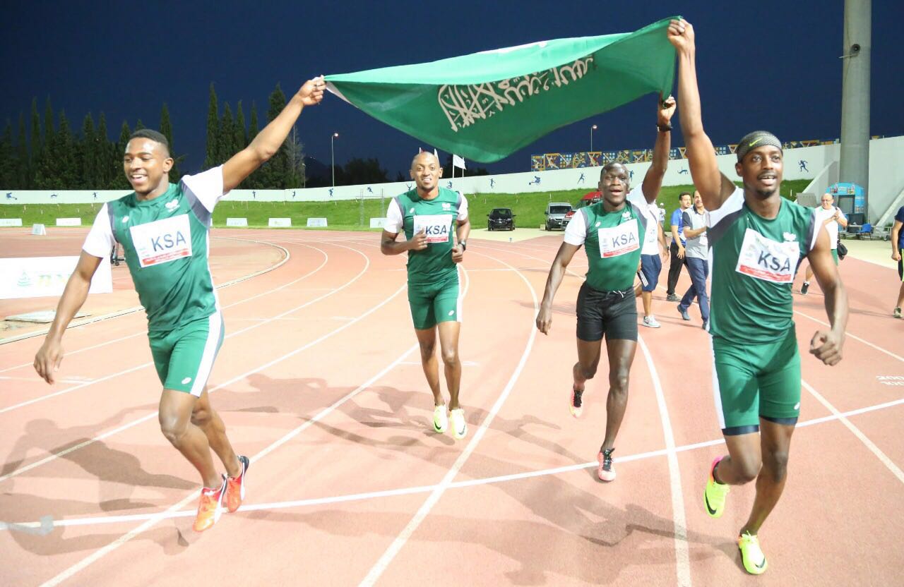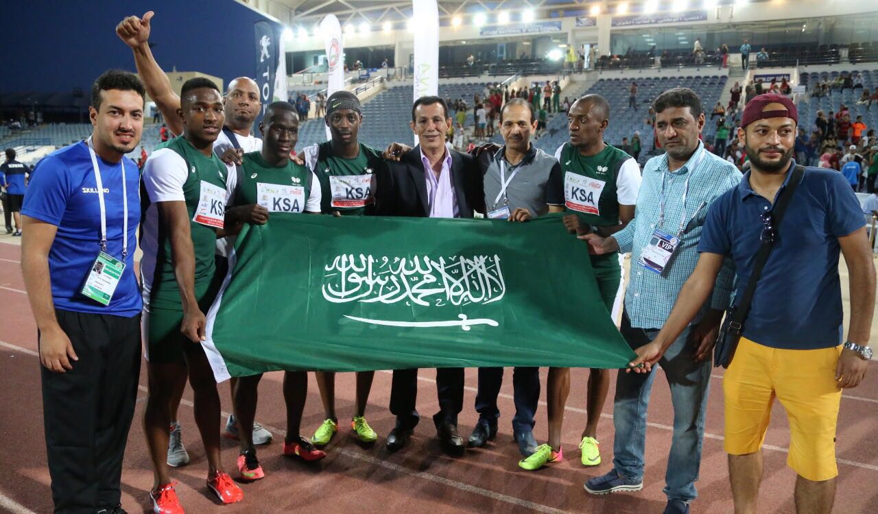 وقاد الفريق العدائين أحمد خضر وأحمد الداوود وأحمد مبروك وفهاد السبيعي الذين انهو السباق بزمن 40,08 ث ثانية متفوقا على المنتخب العماني الذي حل ثانيا والكويتي الذي جاء في المركز الثالث.