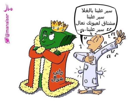 اشتعلت وسائل التواصل الاجتماعي في الآونة الآخيرة بـ ”النكت الساخرة“ على راتب شهر شوال، متداولة الصور والفيديوهات والكاريكاتيرات المعبرة عن تأخر نزوله.