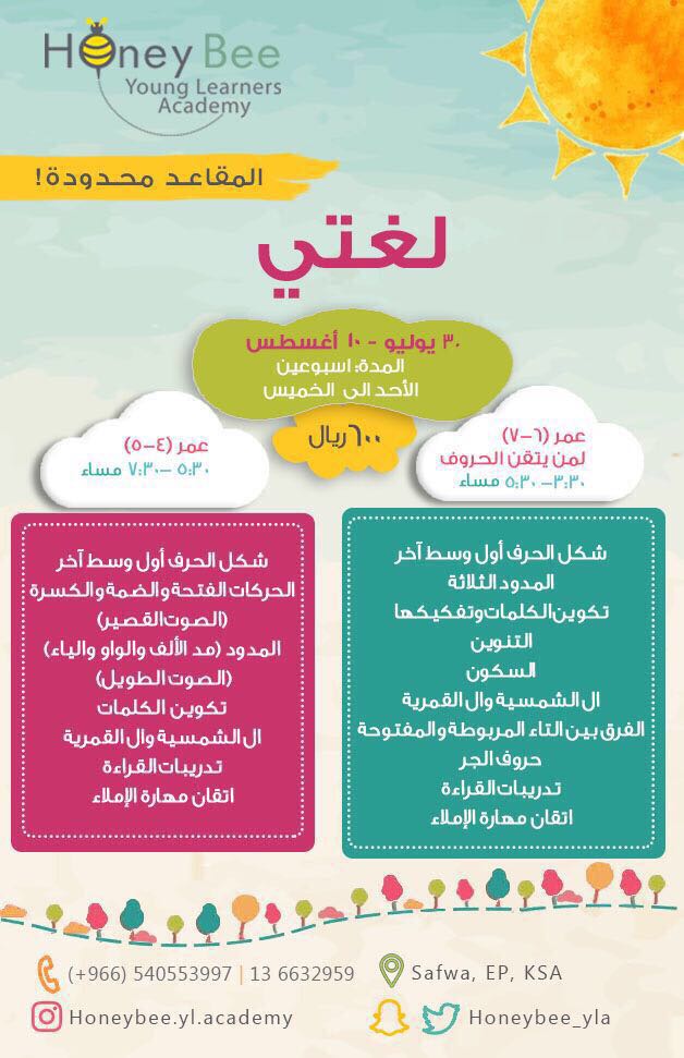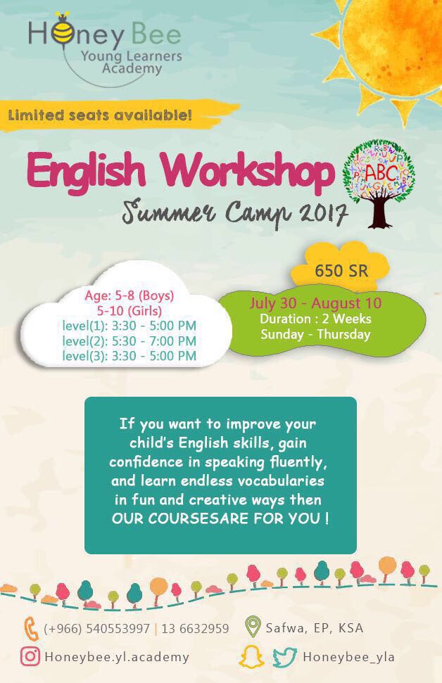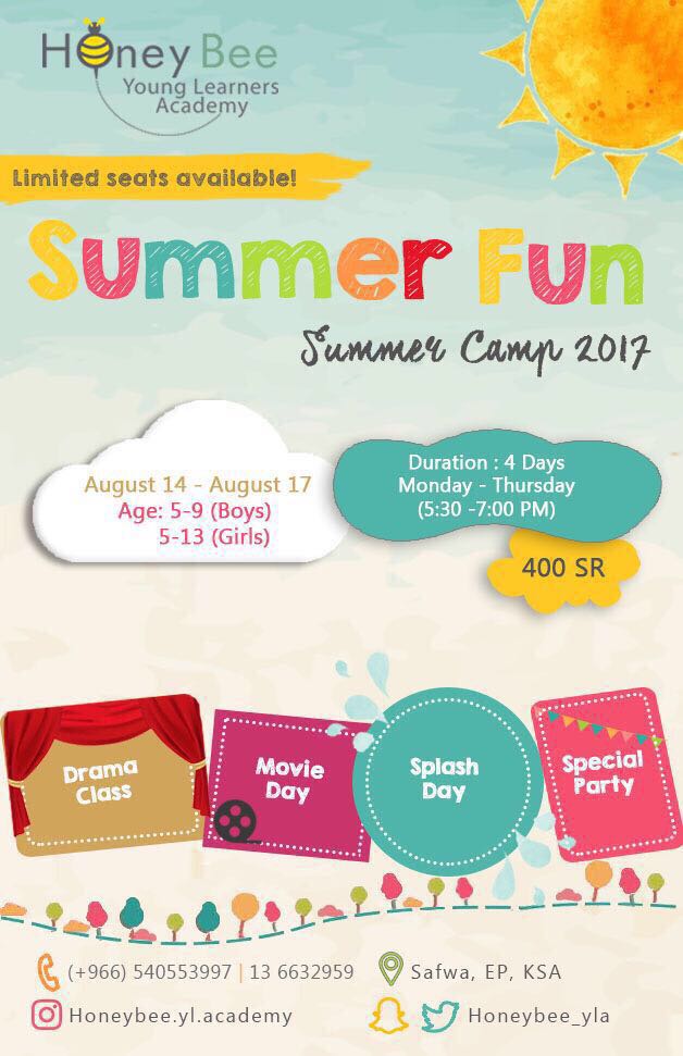 ☀ استثمري صيف طفلك مع أكاديمية Honey Bee بصفوى في ”المخيم الصيفي 2017“ وذلك عبر العديد من البرامج التعليمية والأنشطة المميزة الممتعة!