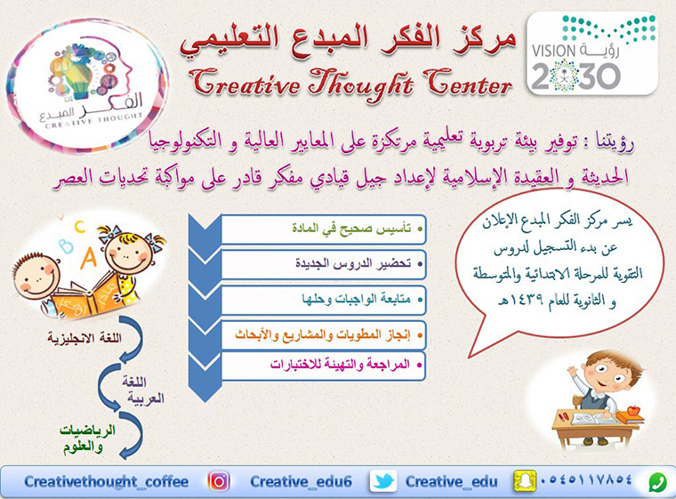 🔑 بَادرِي فِي تَسجِيلها  فِي مَركز الفُكر المبدعِ لِلعَام الدًّرَاسِي 1439هـ