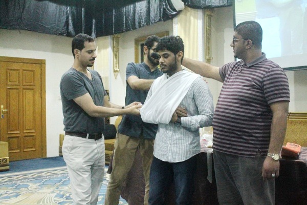 ودرّب الدكتور المعني المشاركين على كيفية إسعاف الجرحى أو المصابين من جراء الحوادث والكوارث العامة، بالإضافة إلى التعامل مع عدد من الجرحى بإصابات مختلفة في آنٍ واحد في حالة حدوث كارثة أو حادث كانفجار أو حادث مروري، متحدثا عن مرحلة فرز الحالات والتي تقتضي ببدء إسعاف المصاب ذو الأولوية القصوى.