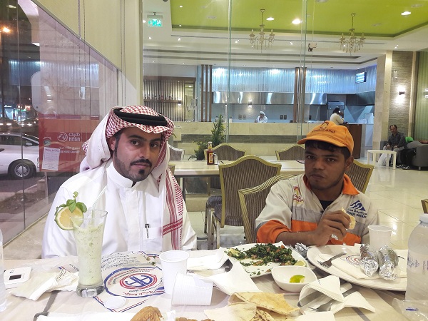 وجدت هذا العامل بجانب المطعم الذي قررت وصديقي تناول العشاء فيه هذه الليلة، فقررت بأن نستضيف هذا العامل، ونتشرف بوجوده ومشاركته لنا وجبة العشاء، ليضيف لمسائي، جو جميل وسعيد ومبارك، حيث أنني أسعد وأفرح وأتبارك بمثل هؤلاء الأشخاص..