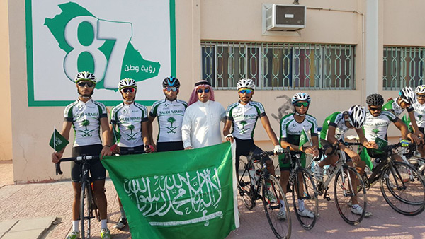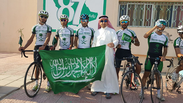 وبين، ان الفريق حرص على ارتداء أقمصة المنتخب السعودي وحمل الاعلام السعودية طيلة الطريق الذي سلكه باتجاه هدفه النهائي، حيث شملت رحلة فريق الدراجات الهوائية جميع طريق محافظة القطيف.