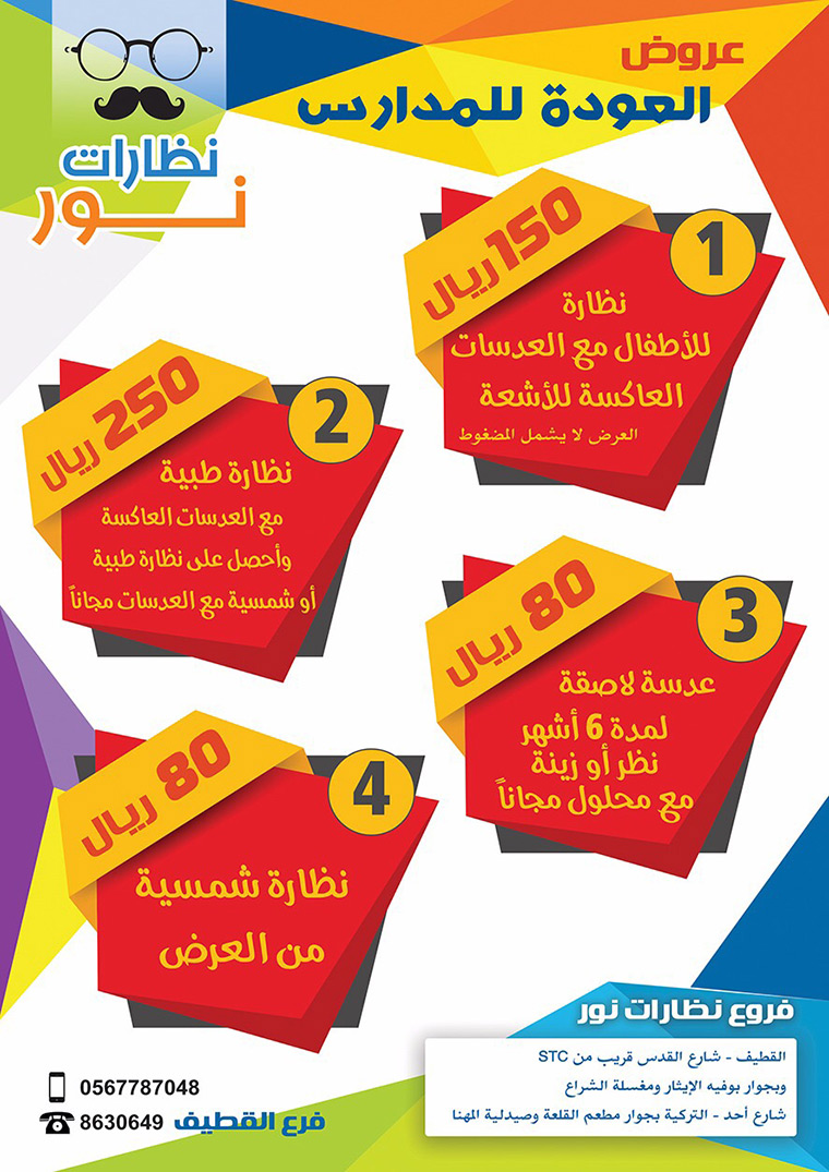1 - نظارة للأطفال مع العدسات العاكسة للأشعة 150 ريال «العرض لا يشمل المضغوط».