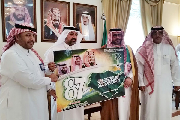 طلاب مدارس العوامية يهنئون محافظ القطيف بمناسبة اليوم الوطني