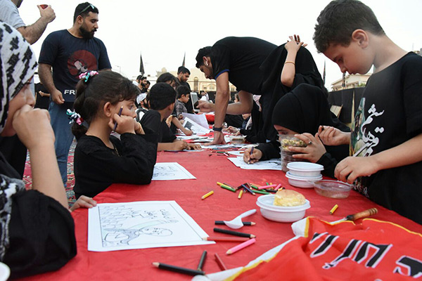 ويضم المخيم الذي شارك فيه 15 متطوعا عددا من الاركان المخيم المختلفة منها ركن المبيعات وركن الأستيديو الحسيني وركن المضيف الحسيني والمرسم الحسيني.
