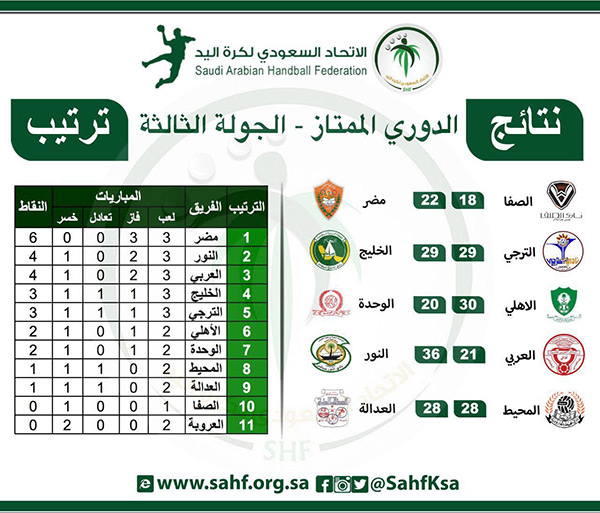 ممتاز اليد: مضر ينفرد بالصدارة والأهلي يكسب ديربي الغربية