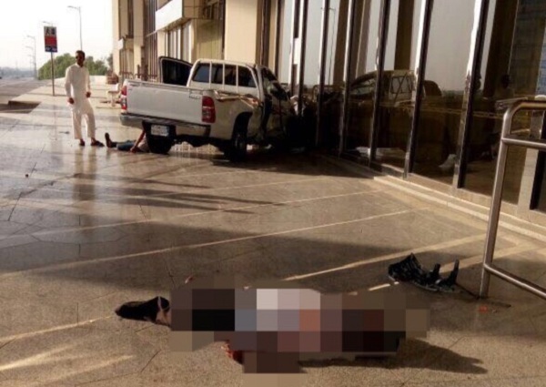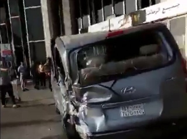 وتلقى مركز عمليات التشغيل بالمطار بلاغاً في الساعة 07:03 صباحاً يوم السبت يفيد بوقوع حادث تصادم بين سيارتين بطريق الخدمة، أمام البوابة D5 بطابق المغادرة، وتم إبلاغ جميع الجهات ذات العلاقة، وبالتوجه للموقع، وبعد المعاينة، لوحظ أن الحادث وقع بين سيارة متوقفة، من نوع ”هونداي“ أمام البوابة D5، وسيارة أخرى من نوع ”تويوتا هايلكس“ اصطدمت بها بقوة، قبل أن تنحرف إلى المنطقة الفاصلة بين البوابتين D6_D7.