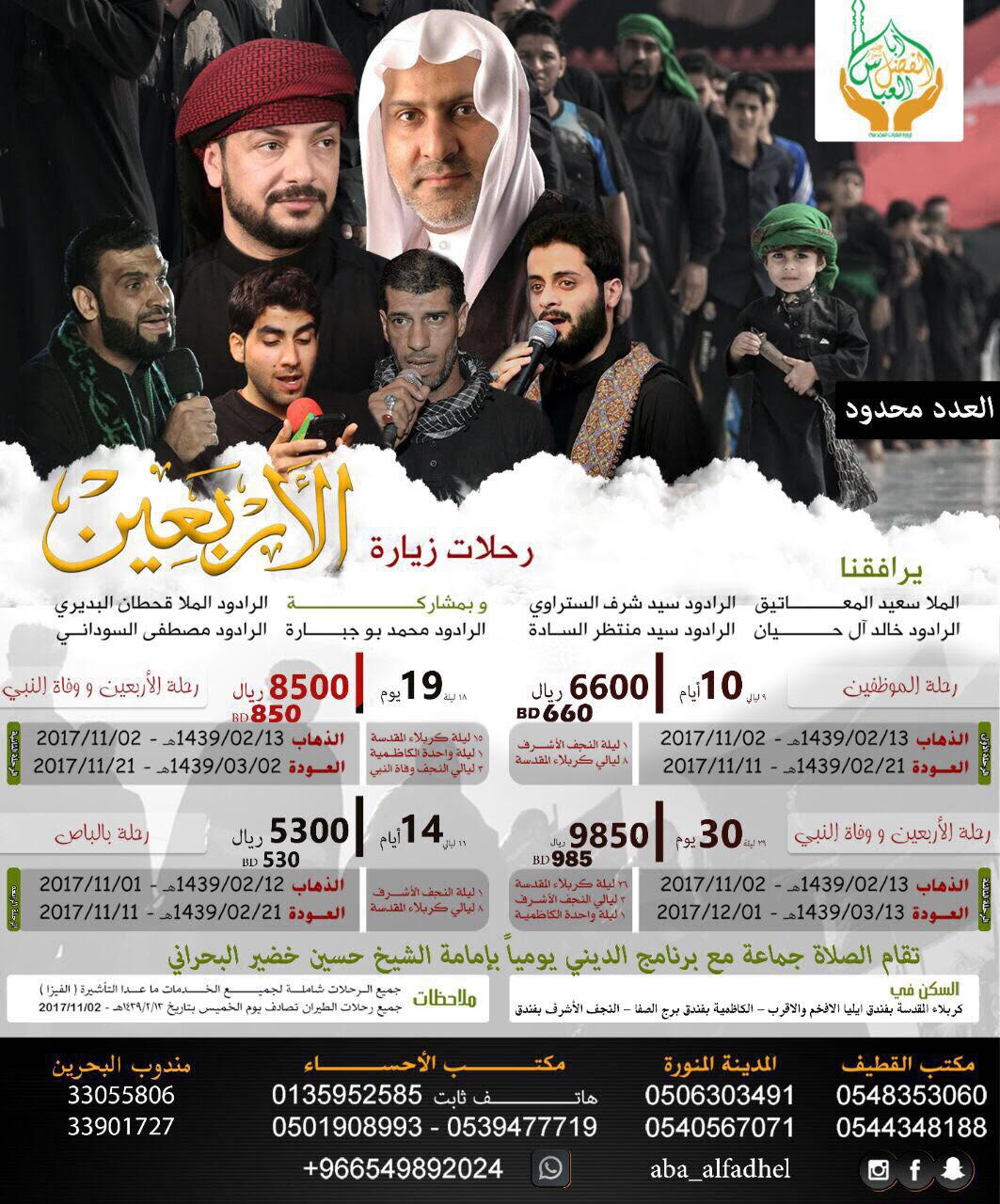 📆 ملاحظة جميع الرحلات تنطلق يوم الخميس 2/11/2017 الموافق 13 صفر