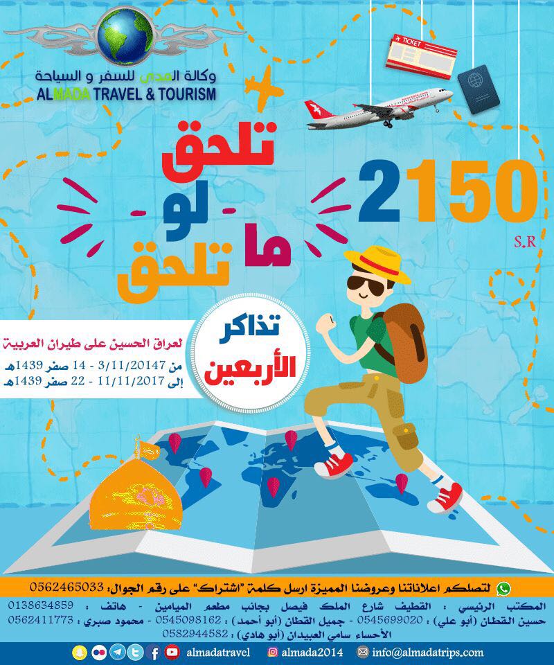 تلحق لو ما تلحق... رحلات زيارة الأربعين من وكالة المدى للسفر والسياحة